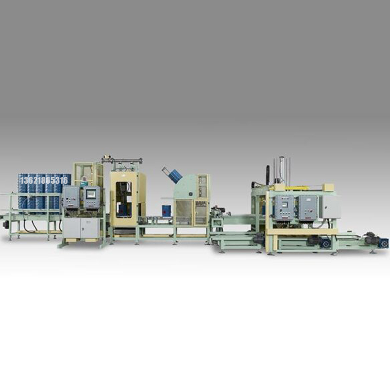 全自動防爆金屬桶灌裝機AF全自動桶裝線專為金屬桶裝拆桶、灌裝、封口和碼垛而設計。